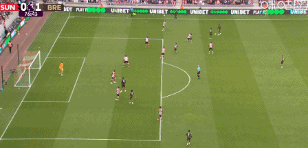 第77分钟,奥涅卡送出传中,蒂亚戈头球破门!桑德兰0-1布伦特福德